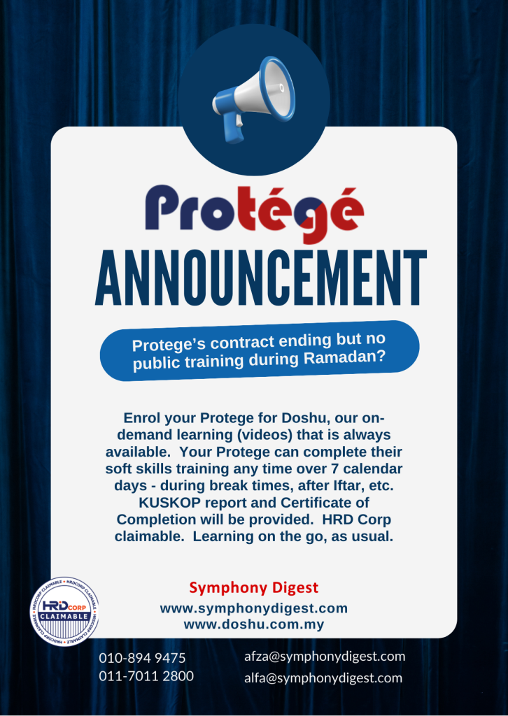 Best of all, we have Doshu, our on-demand video learning platform where your proteges can learn at their own pace, without disrupting their everyday work. We understand this is important for proteges based on-site and who are rushing for deadlines. Let’s keep the supervisors happy too
